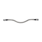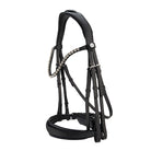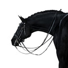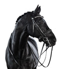 The crown piece is anatomically designed and slimmed behind the ears to increase the height at which the brow band can be positioned to ensure adequate clearance of the orbital bone. The noseband is slim as it traverses the body of the mandible and features rounded dee rings. The streamlined noseband ensures the cheek pieces maintain close contact with the horse as they connect to the bit.