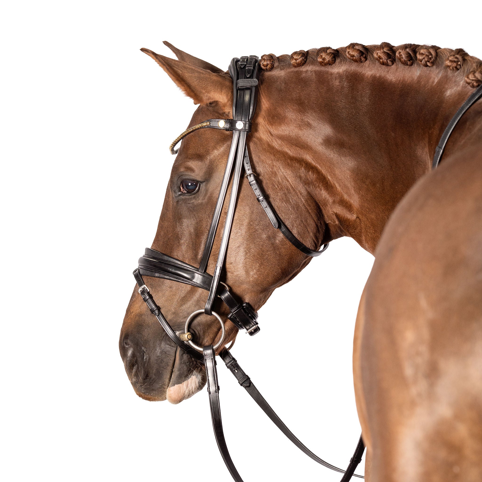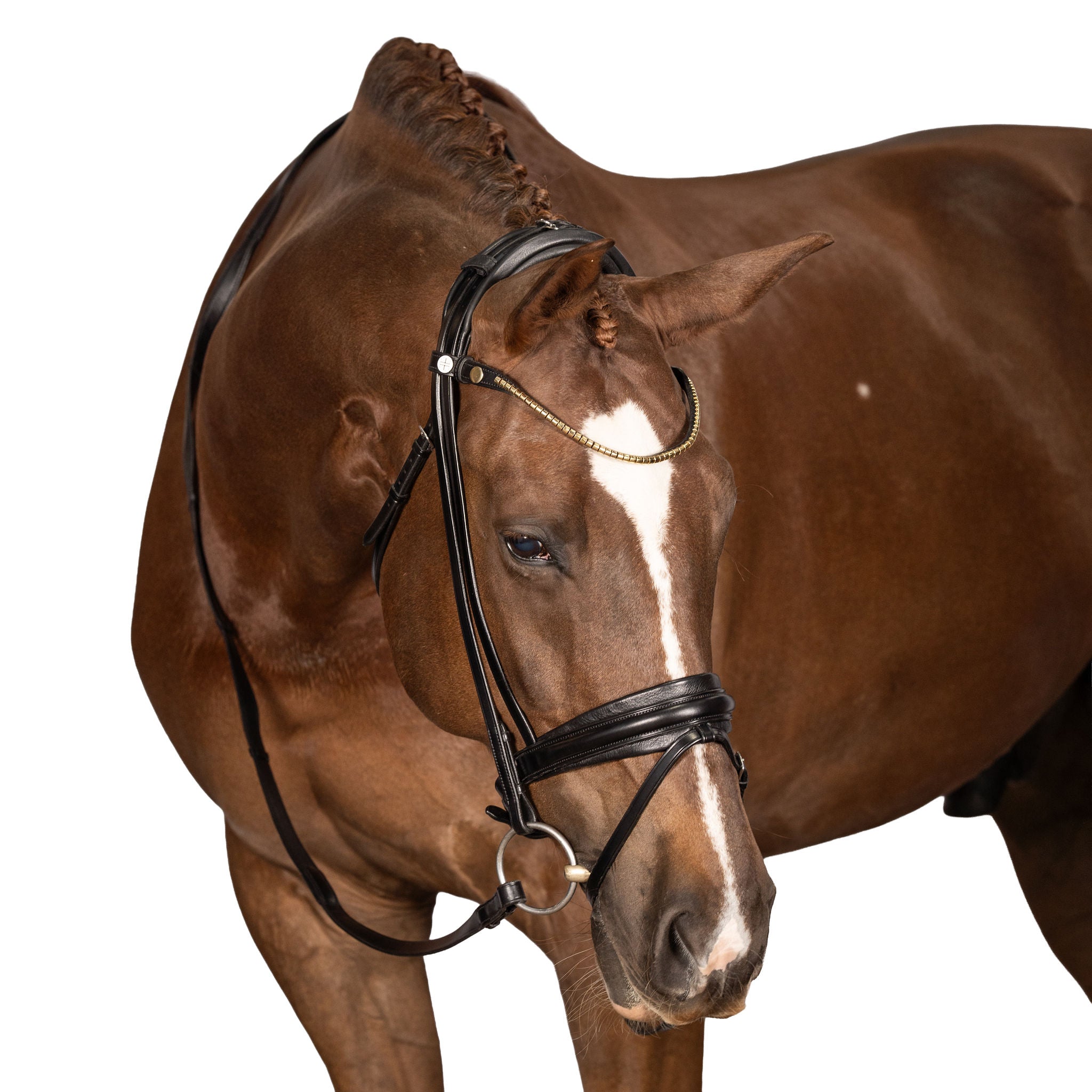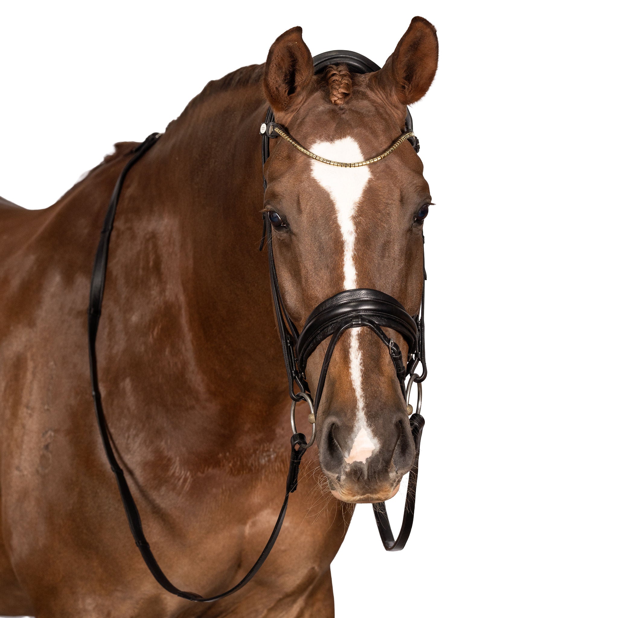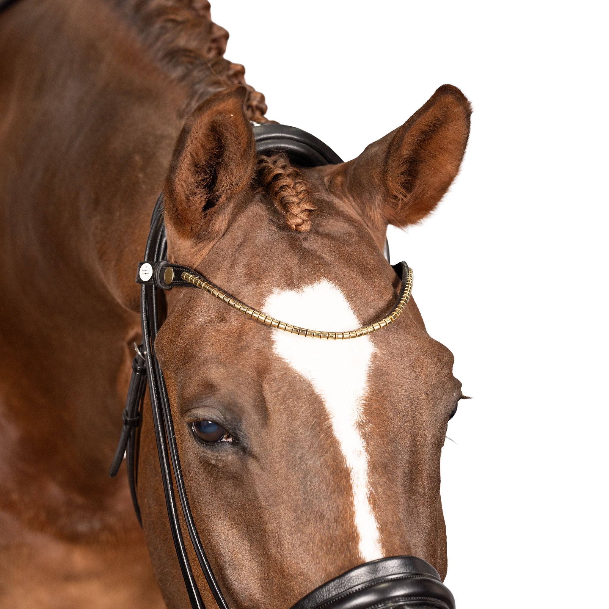 Give your AntiGravity bridle a luxe upgrade with our new Clincher brow band. This brow band is constructed from ultra soft padded leather and set with golden clinchers. Available in cob, full and x-full sizes.