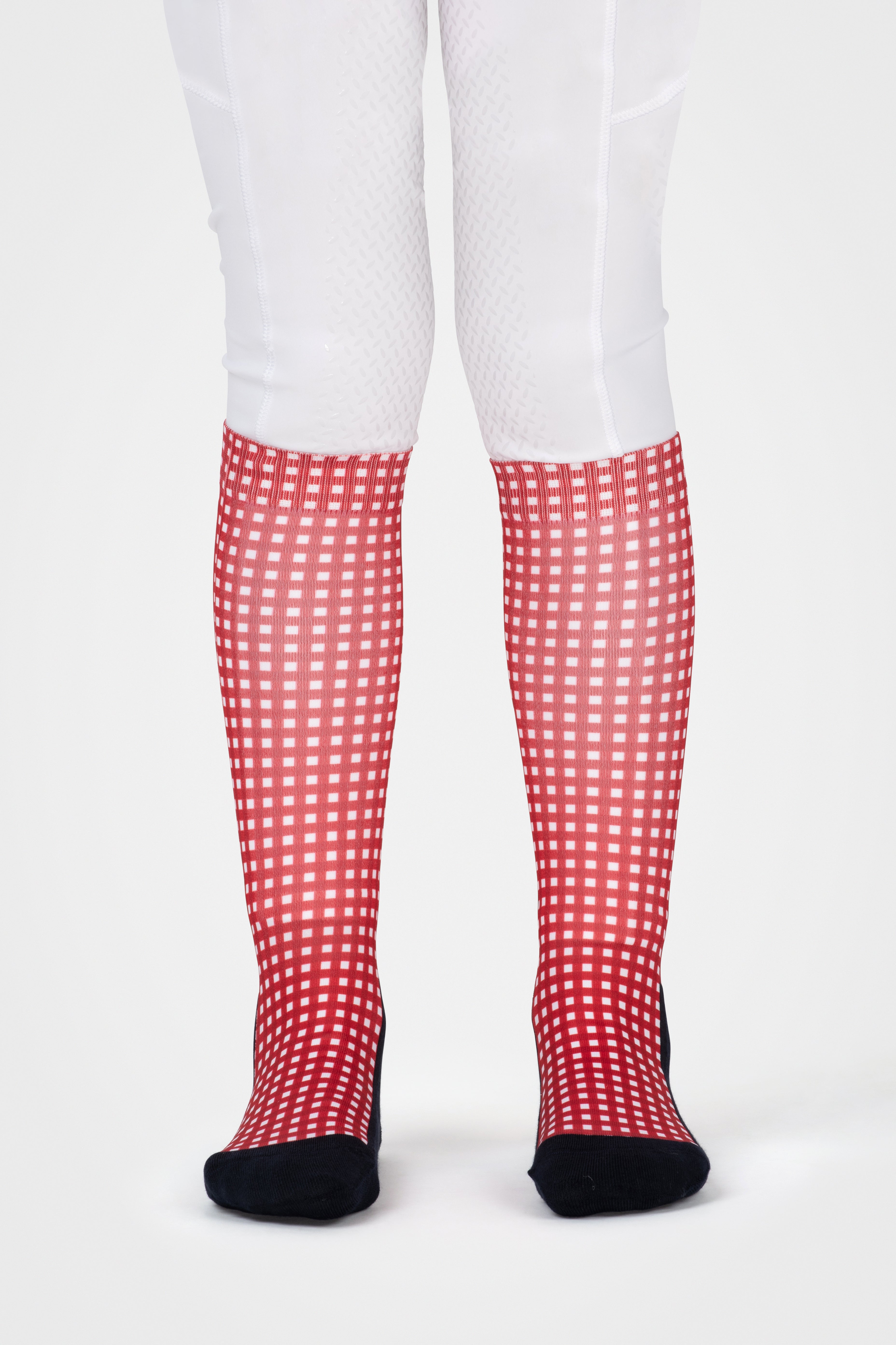 Meet the Cherry Red Gingham Childs riding socks - the most gorgeous riding socks ever. Super soft cotton blend foot bed combined with a stocking calf ensure these socks are as comfortable as they are gorgeous.