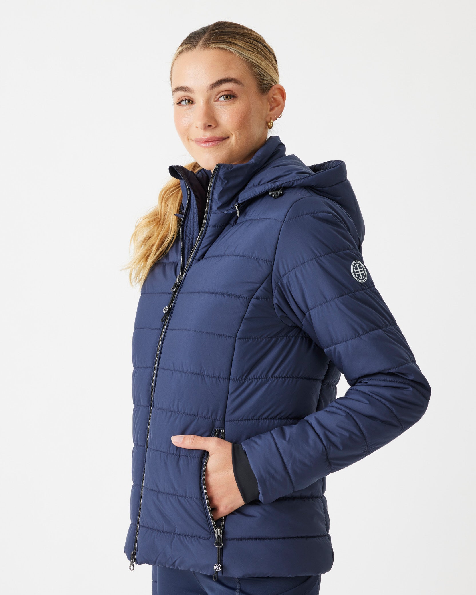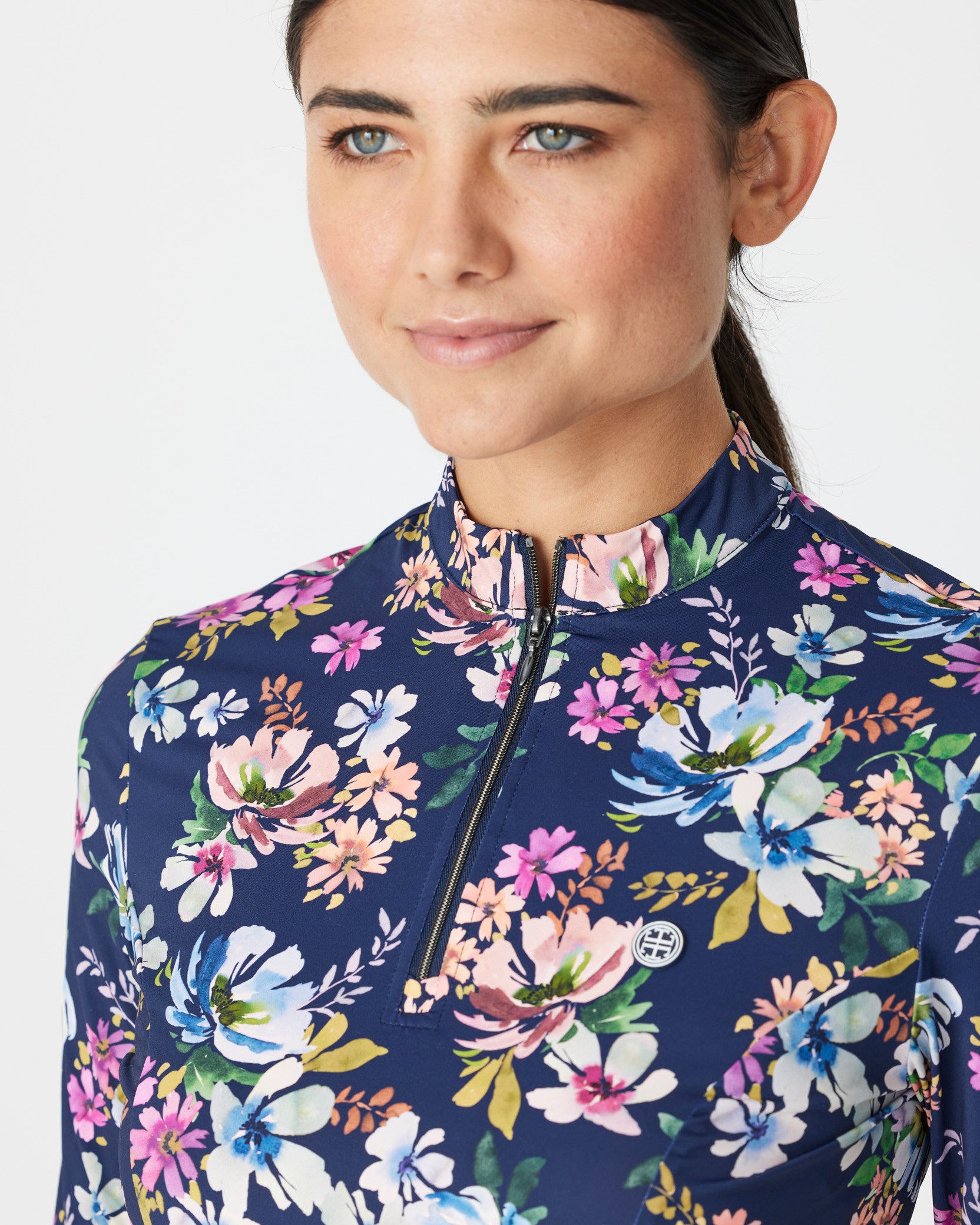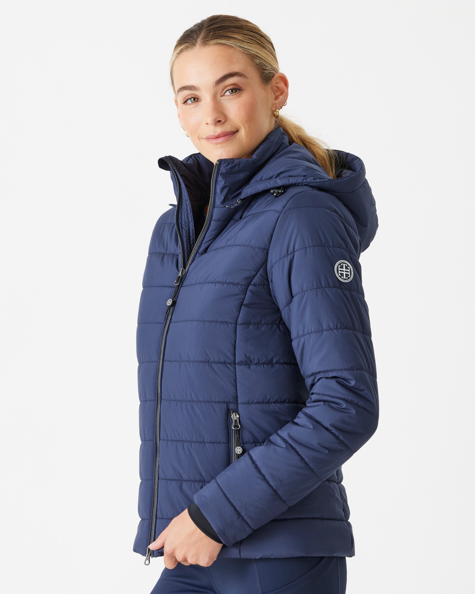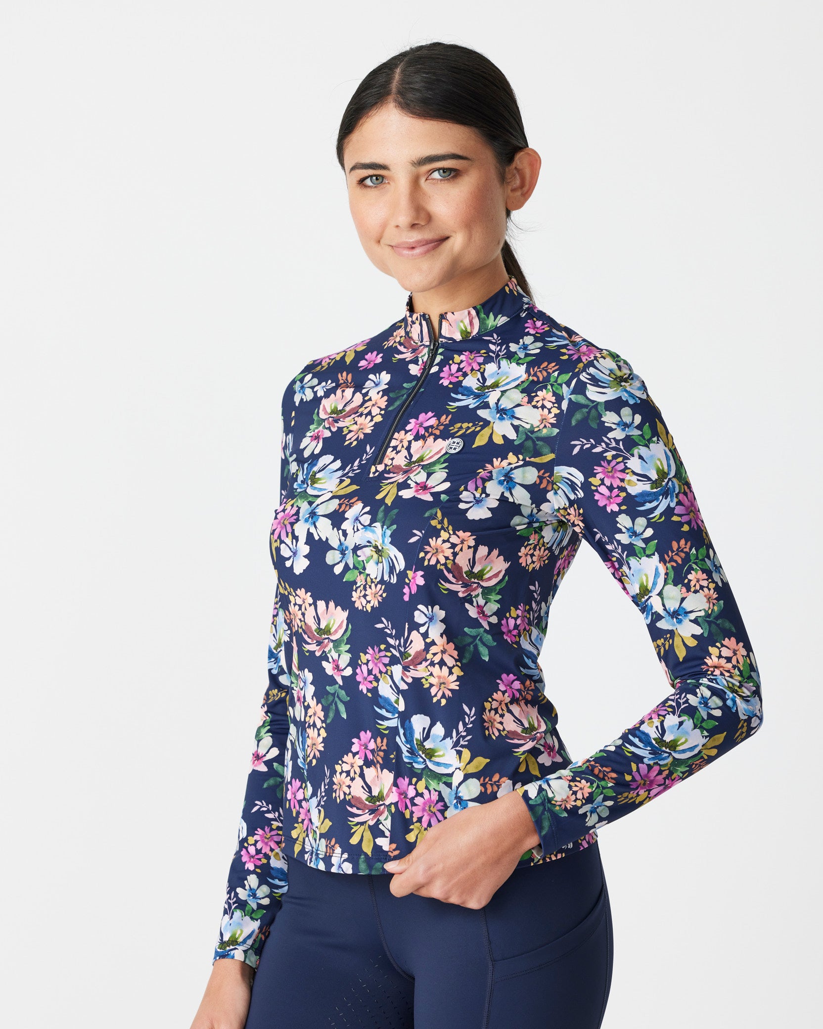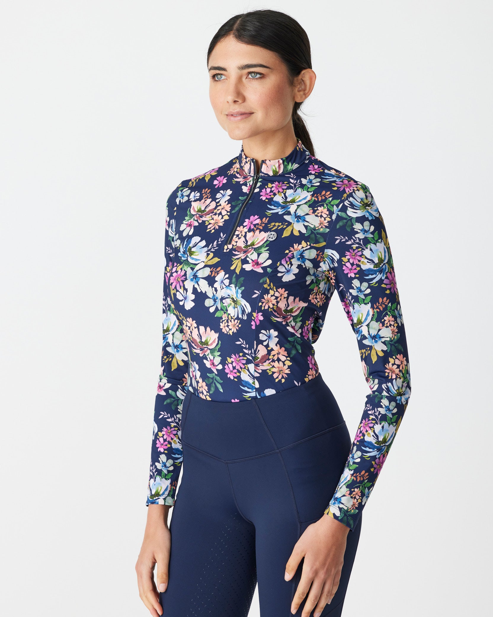 An up-for-anything relaxed fit tee featuring a crisp white embroidered logo. This cotton tee hangs so nicely you can easily wear this out and about after jumping off your horse.