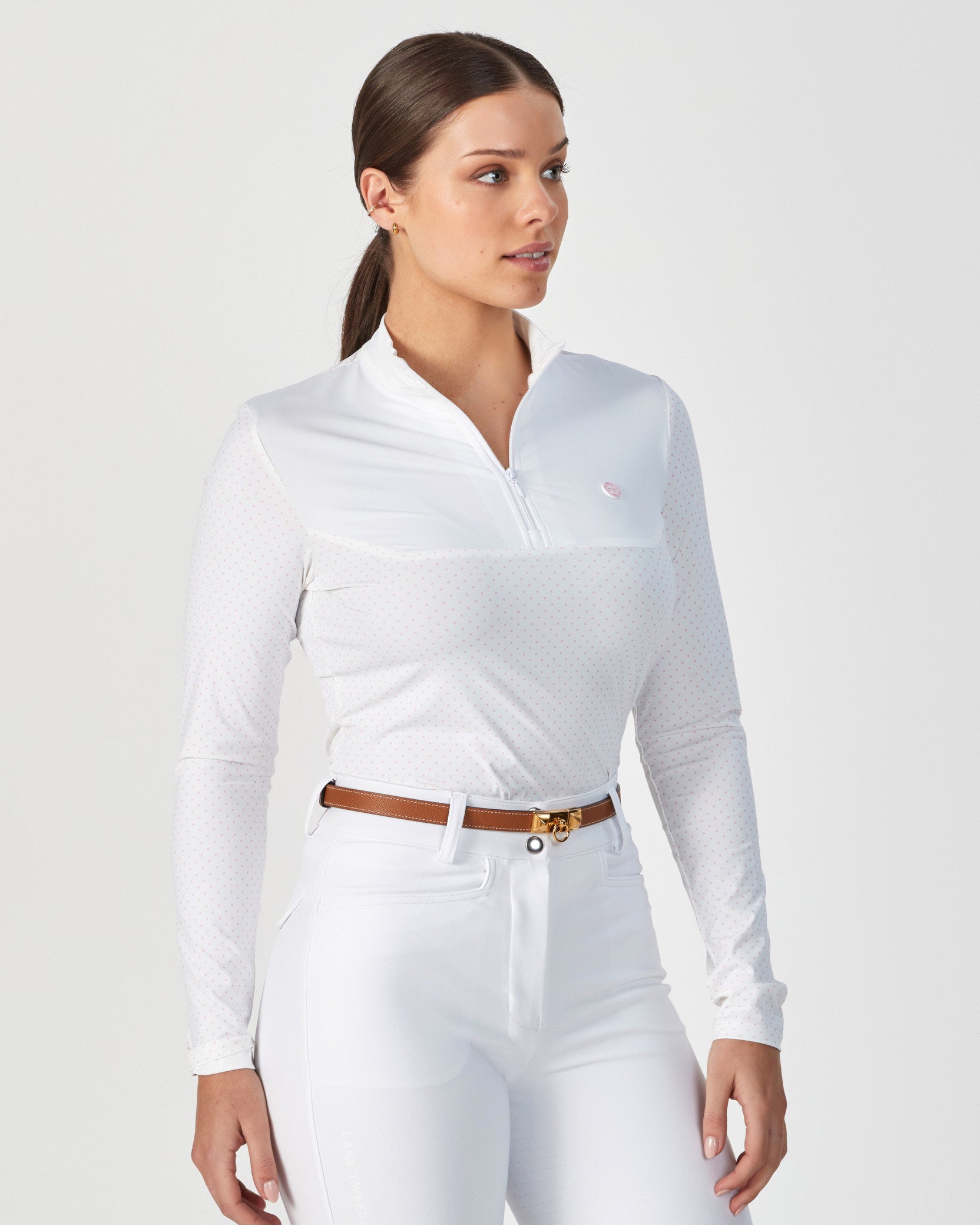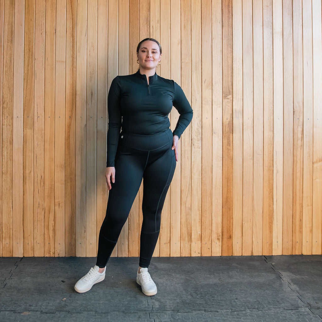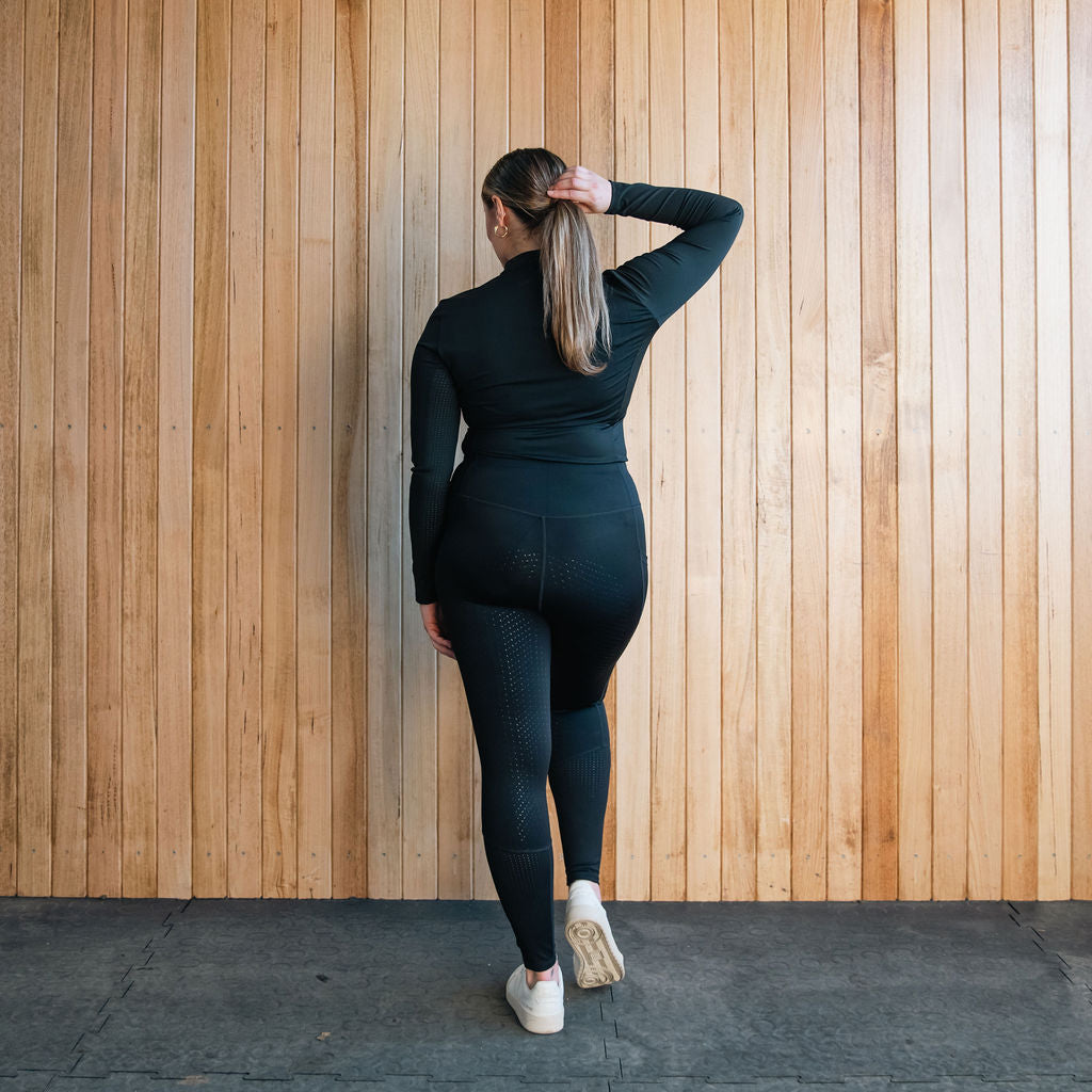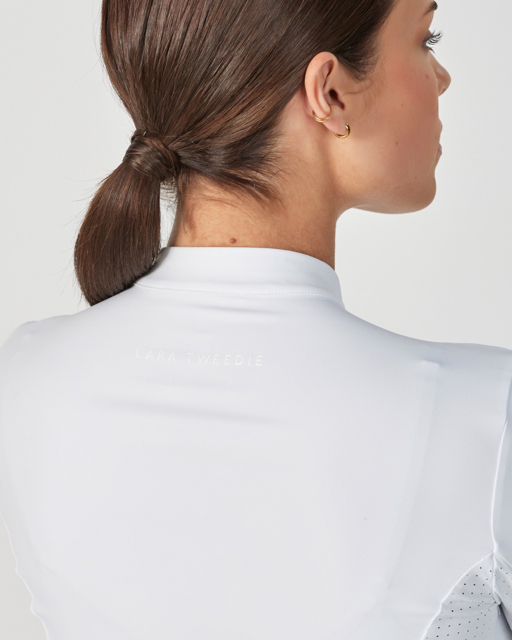 In feather light, no cling fabric our limited edition long sleeve training top combines elegance with performance. We cut this competition top to a hip grazing length so you can style it tucked in or out. You'll look perfectly put together however you wear it.