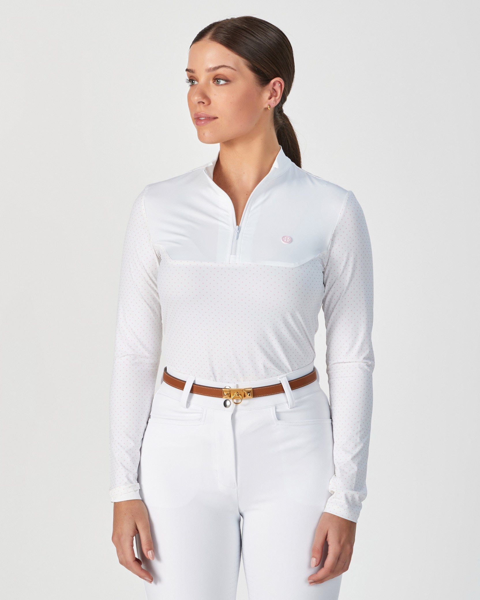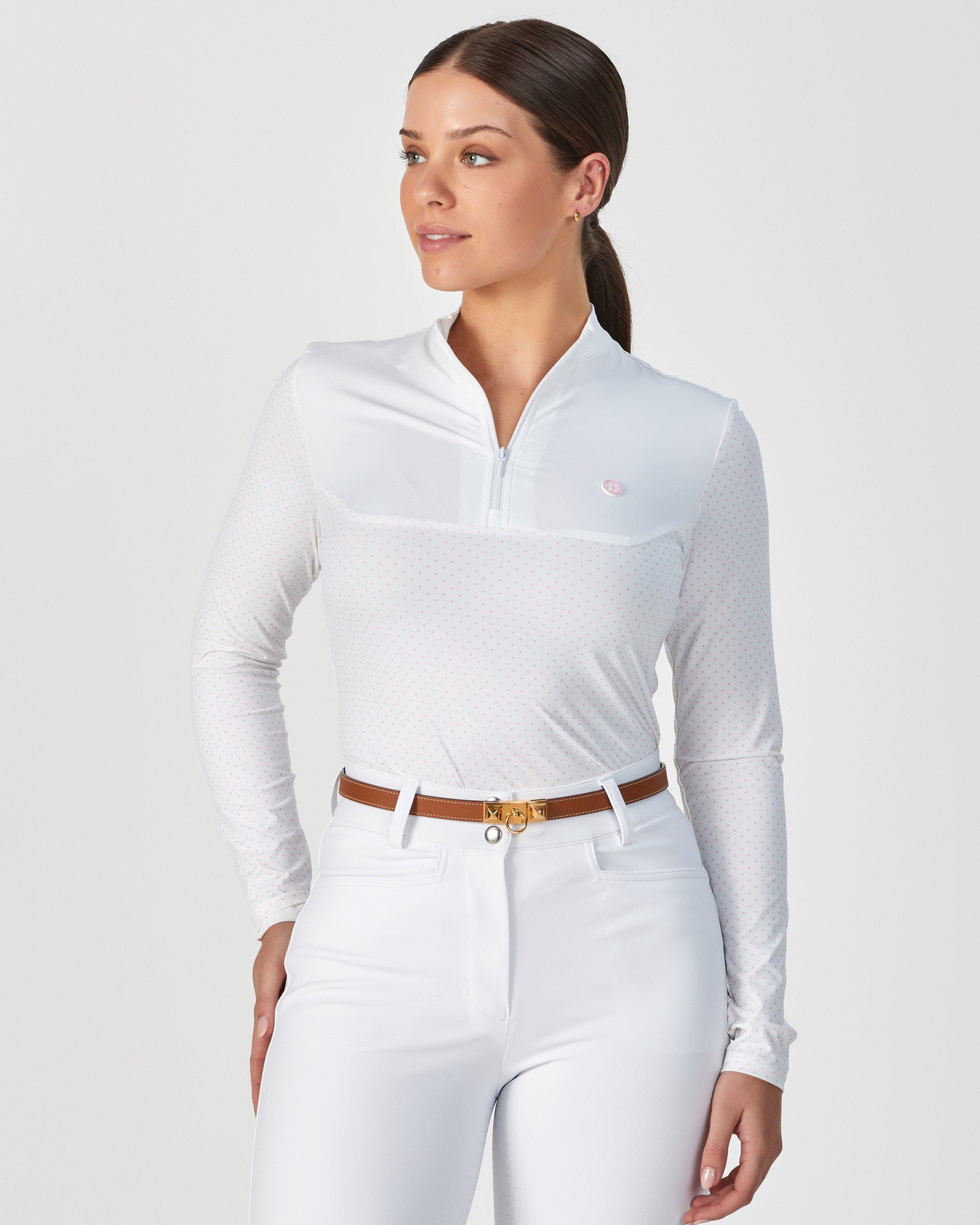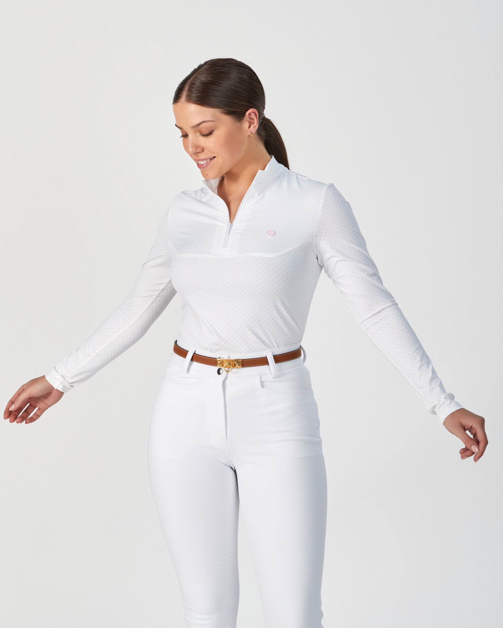 In feather light, no cling fabric our limited edition long sleeve training top combines elegance with performance. We cut this competition top to a hip grazing length so you can style it tucked in or out. You'll look perfectly put together however you wear it.