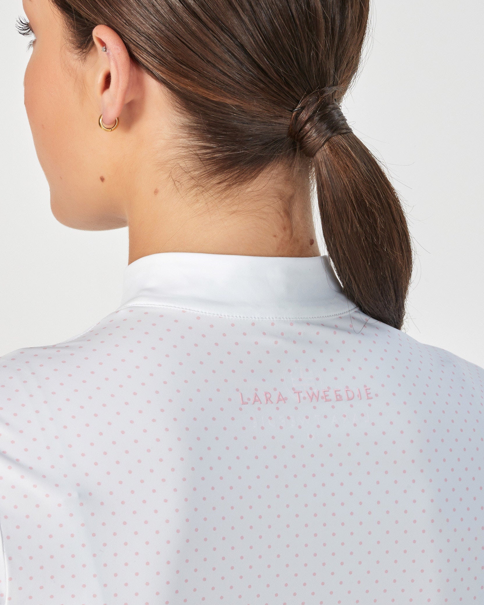 Details: White & Navy LT logo badge, Lara Tweedie white logo on back neck.
