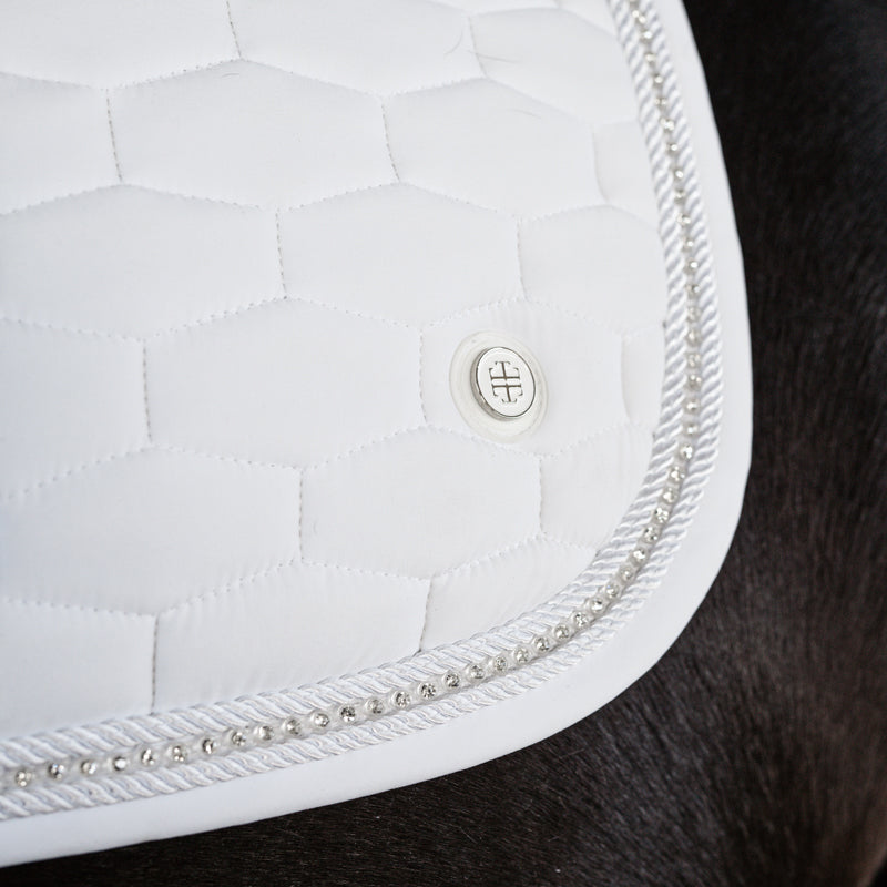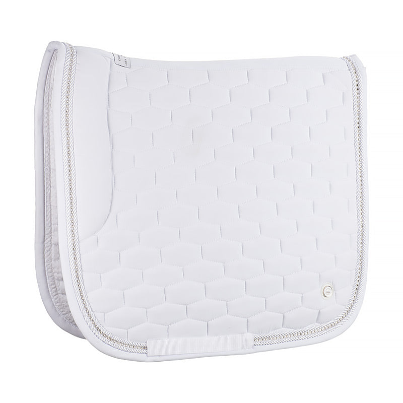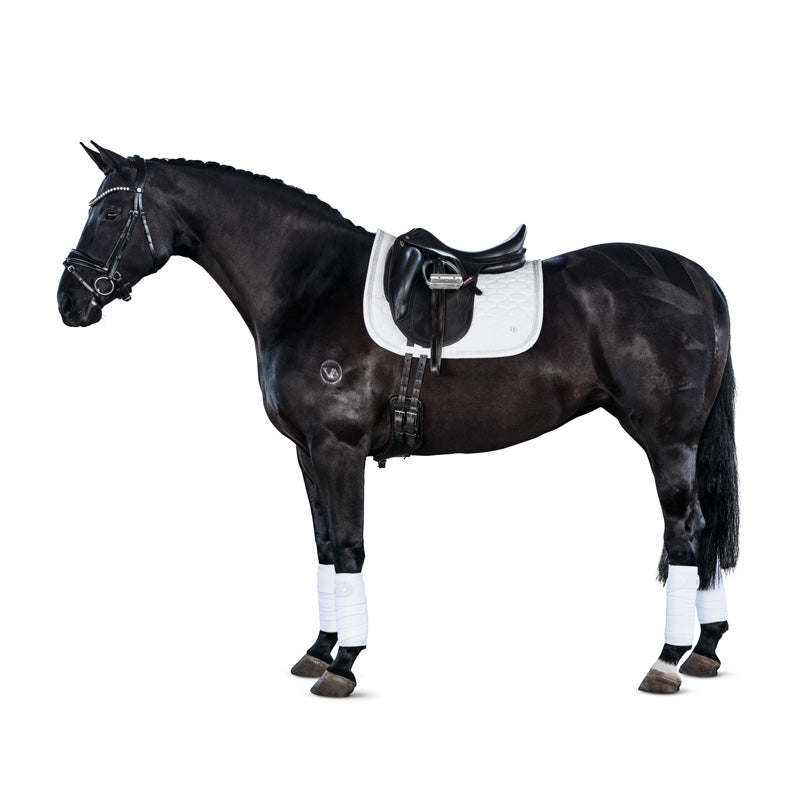 This ultra soft dressage saddle pad is the ultimate in comfort for your horse. Waffle weave cotton lining and eco fill offer natural breathability.