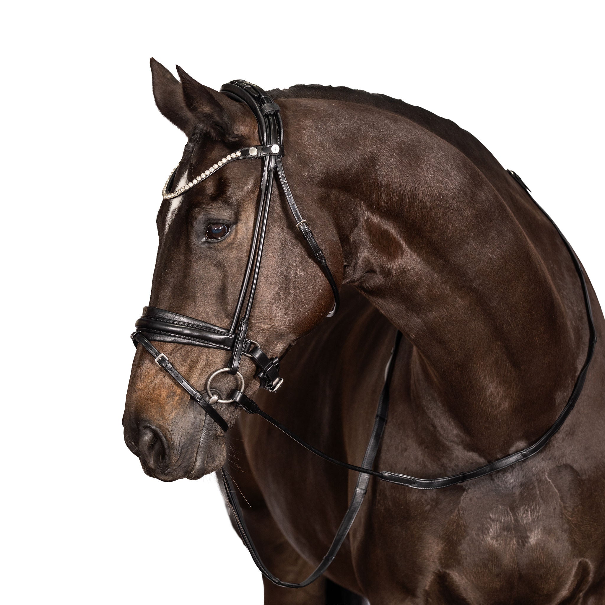 The nosebands on the LT dressage bridles all feature a 5 keeper configuration to ensure a neat finish and made to measure look. The noseband on each of the LT snaffle bridles also features a crank pad finished with a unique keeper saver. Never lose a noseband keeper again!