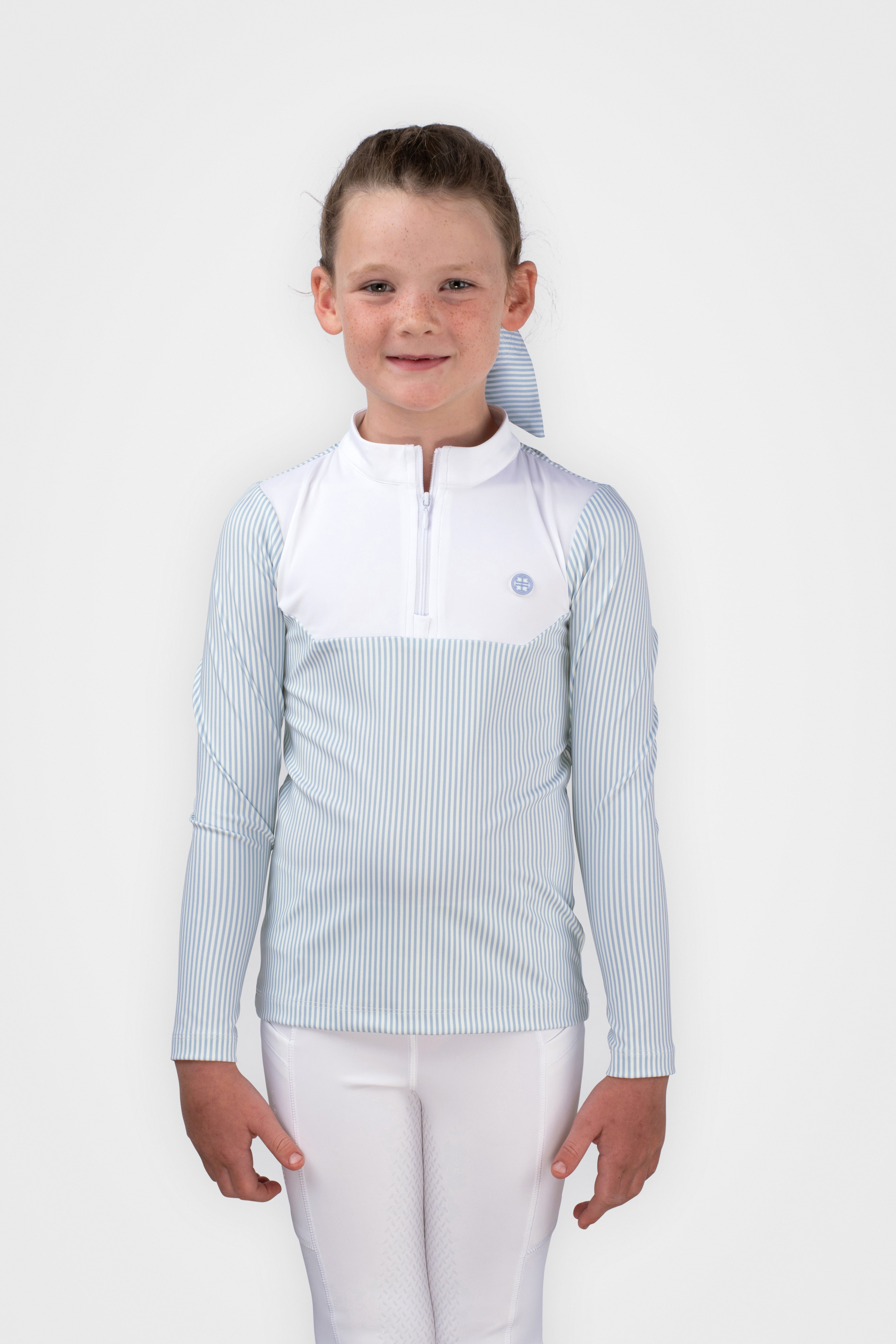 Sweet, Stylish, and Saddle ready! Our limited-edition Coastal Stripe Girls Competition Top is made from feather-light, no-cling fabric for all-day comfort in the saddle. Designed with a stylish hip-grazing cut, it can be worn tucked in or out, so young riders always look polished, confident, and competition ready.