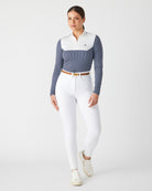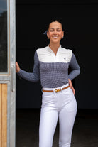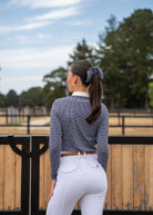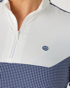 Crafted from feather-light, non-cling fabric, our new White Mini Check competition top blends refined style with peak performance. Cut to a flattering hip-grazing length, it’s designed to be worn tucked in or loose—effortlessly polished either way.