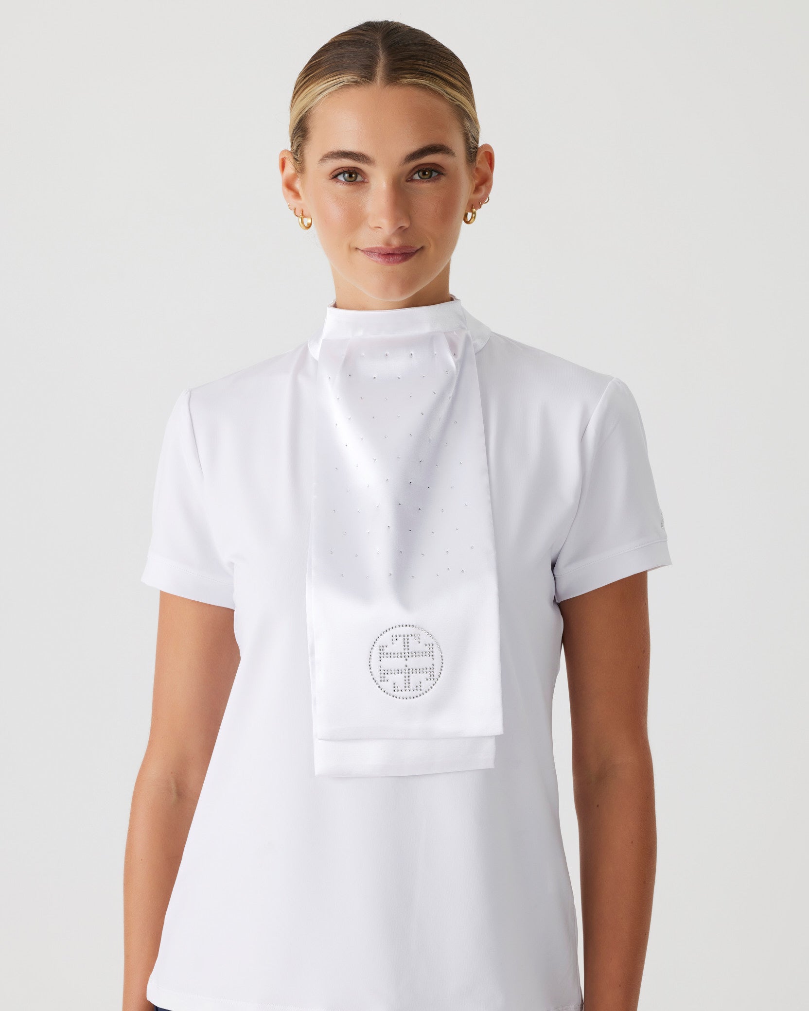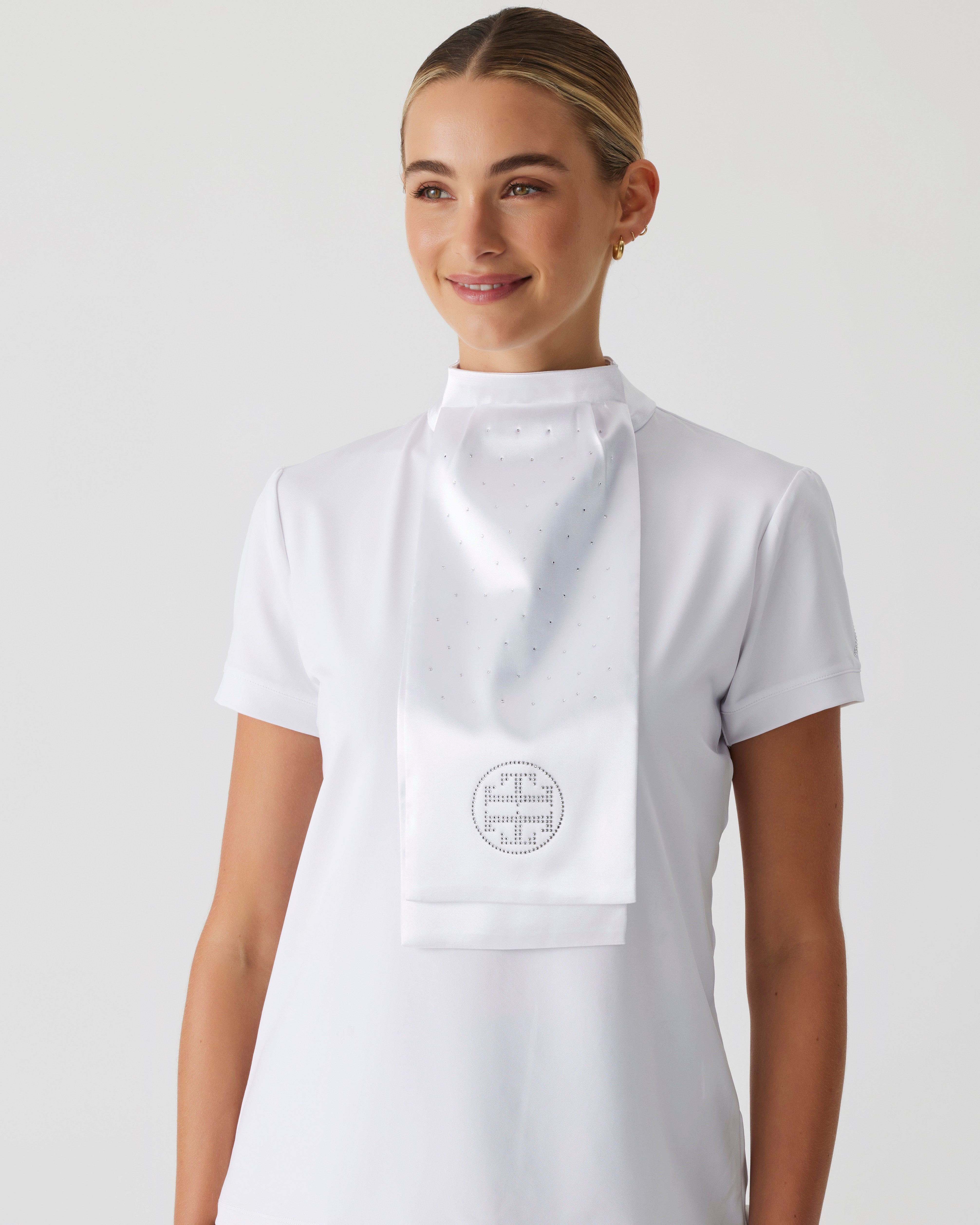 This perfectly pretty, hot fix crystal stock tie is our modern take on an equestrian classic.